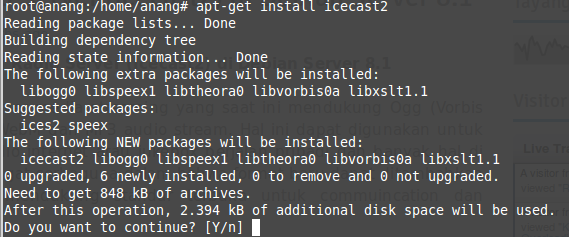 - Kemudian restart dengan perintah#/etc/init.d/ icecast2 restart